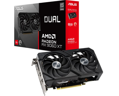 ASUS AMD Radeon Dual RX9060XT 8G GDDR6 20 Gbps 128-bit 2.5 Slot 202 x 120 x 49mm Model DUAL-RX9060XT-8G Graphic Engine AMD Radeon™ RX 9060 XT Bus Standard PCI Express...