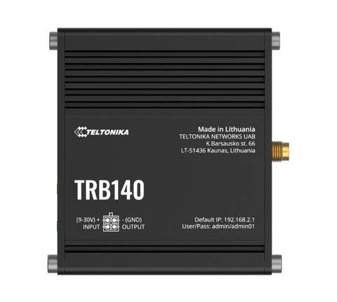 Standard package* TRB141 Gateway 9 W PSU 1x Mobile antenna (magnetic mount, SMA male, 3 m cable) - NHT-PR1KS210 Micro-USB cable (0.8 m) 1x hex key I/O connector QSG (Quick...