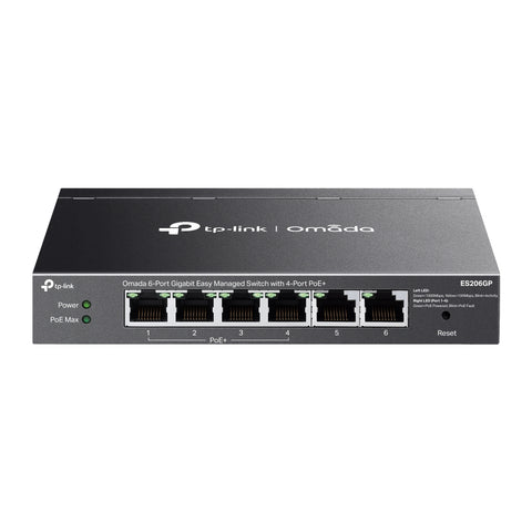 TP-Link ES206GP Omada 6-Port Gigabit Easy Managed Switch with 4-Port PoE+ • 6× 10/100/1000Mbps RJ45 ports (4× 802.3af/at-compliant PoE+) • 65W Power Budget, with up to 30W for each PoE...