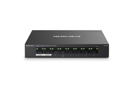 Mercusys MS108GP 8-Port Gigabit Desktop Switch with 7-Port PoE+ • Full Gigabit Ports: 8× 10/100/1000 Mbps RJ45 ports • Two Cables in One: With 7 PoE+ ports, transfers data and...