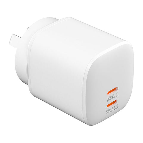 Specification:  Input: 100V-240V~ 50/60Hz Output:USB-C1: 5V/9V/12V/15V3A, 20V3.35A PD3.0 67W Max, 5-11V5A PPS 45W Max USB-C2: 5V/9V/12V/15V3A, 20V3.35A PD3.0 67W Max, 5-11V5A PPS 45W Max USB-C1+C2: 45W+20W Max Case: PC V0...